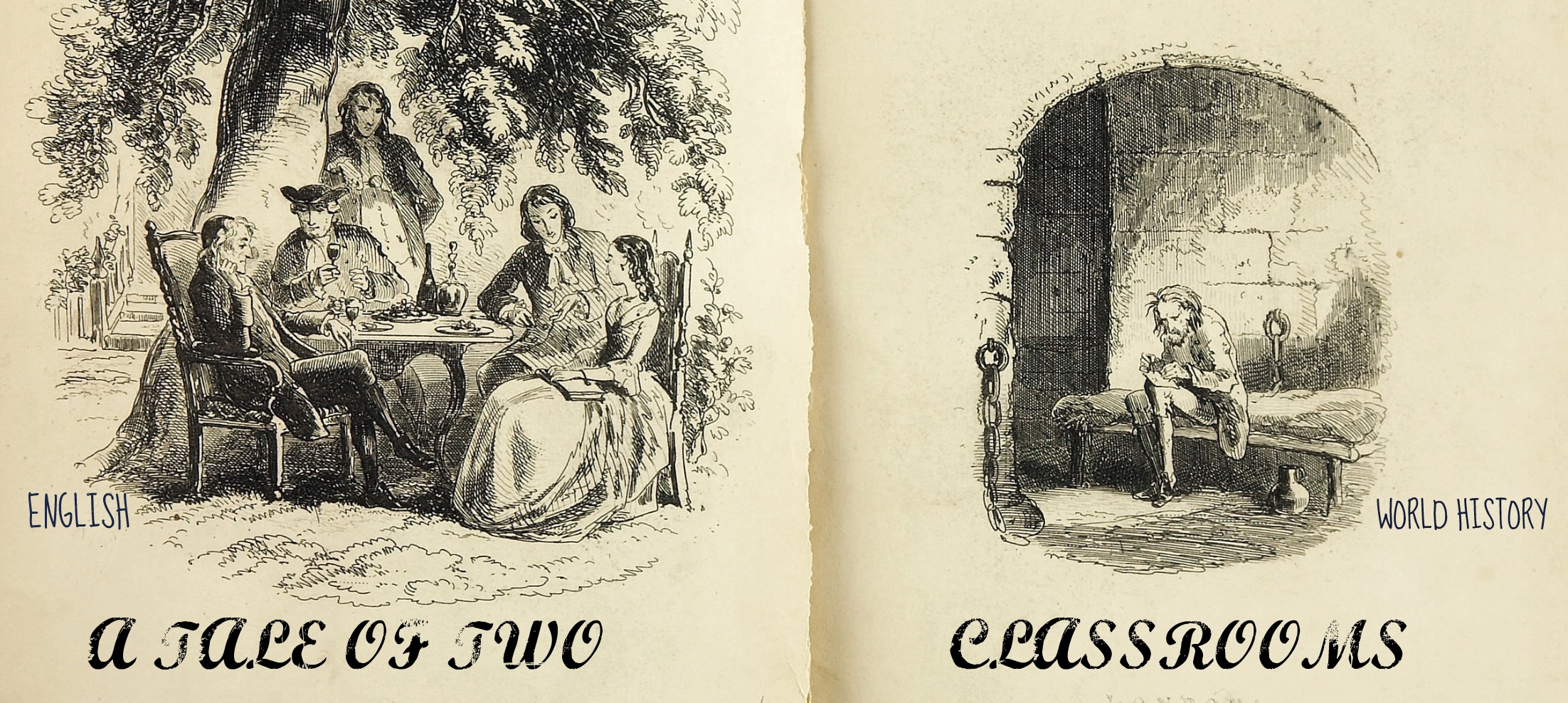 It was the best of educational experiences. It was the worst of educational experiences. It was a time in which a student could get an A on her English assignment for writing her “how-to” paper on the subject of How to Begin Your Secret Mission. It was a time in which a student could get no credit at all for writing a paper in World History with the assigned topic of “Ancient Greek Mythology” because she went beyond the rubric when she explored the sociological aspects and explained why the myths made sense in the context of the culture, when they can seem so nonsensical today. It was a time in which English teachers were lauded and World History teachers reviled within certain households. Creativity was nurtured and creativity was punished; individuality was encouraged and rigid conformity was enforced. Students were going directly on to brilliant college success because of their abilities to stretch their minds; students were headed to a life selling items that fell off of trucks because of their inabilities to follow directions to the letter. It was an American girl’s sophomore year in high school. The two classrooms were in the same building, but may as well have been on different planets.