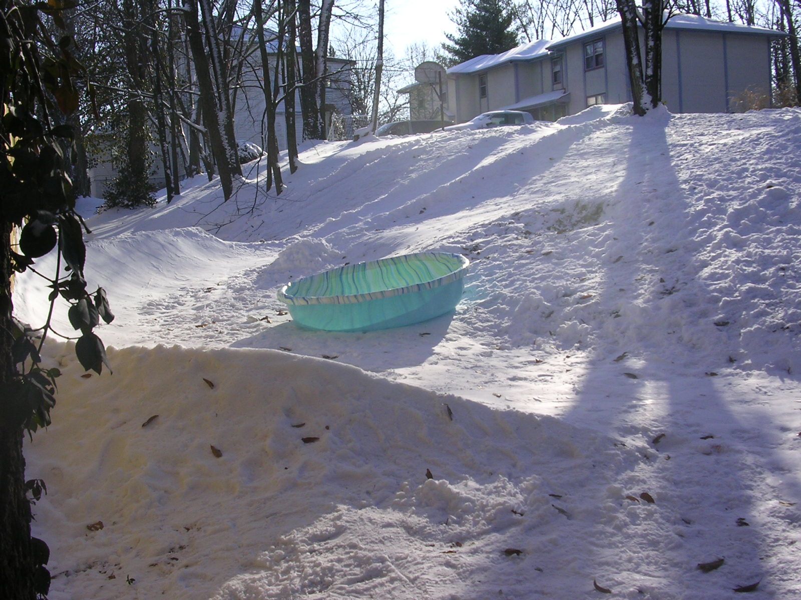 Previous Image Next Image Sled Run We have a nice little hill in back of the house, and my husband builds a curved sled run, so we don’t crash into the neighbor’s fence. This was his first one.