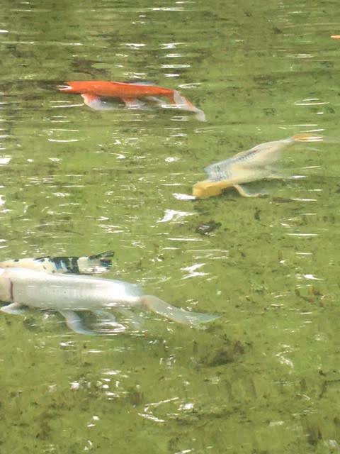 However, I talked my son — who currently has a slightly bum foot and also needs a to move more slowly than usual — into accompanying me on a little outing to Shelter Gardens, where we could make like the gentry and stroll at a leisurely pace, enjoying the results of someone else’s manual labor. I didn’t take many photos, but we found serenity lingering at the fish pond.