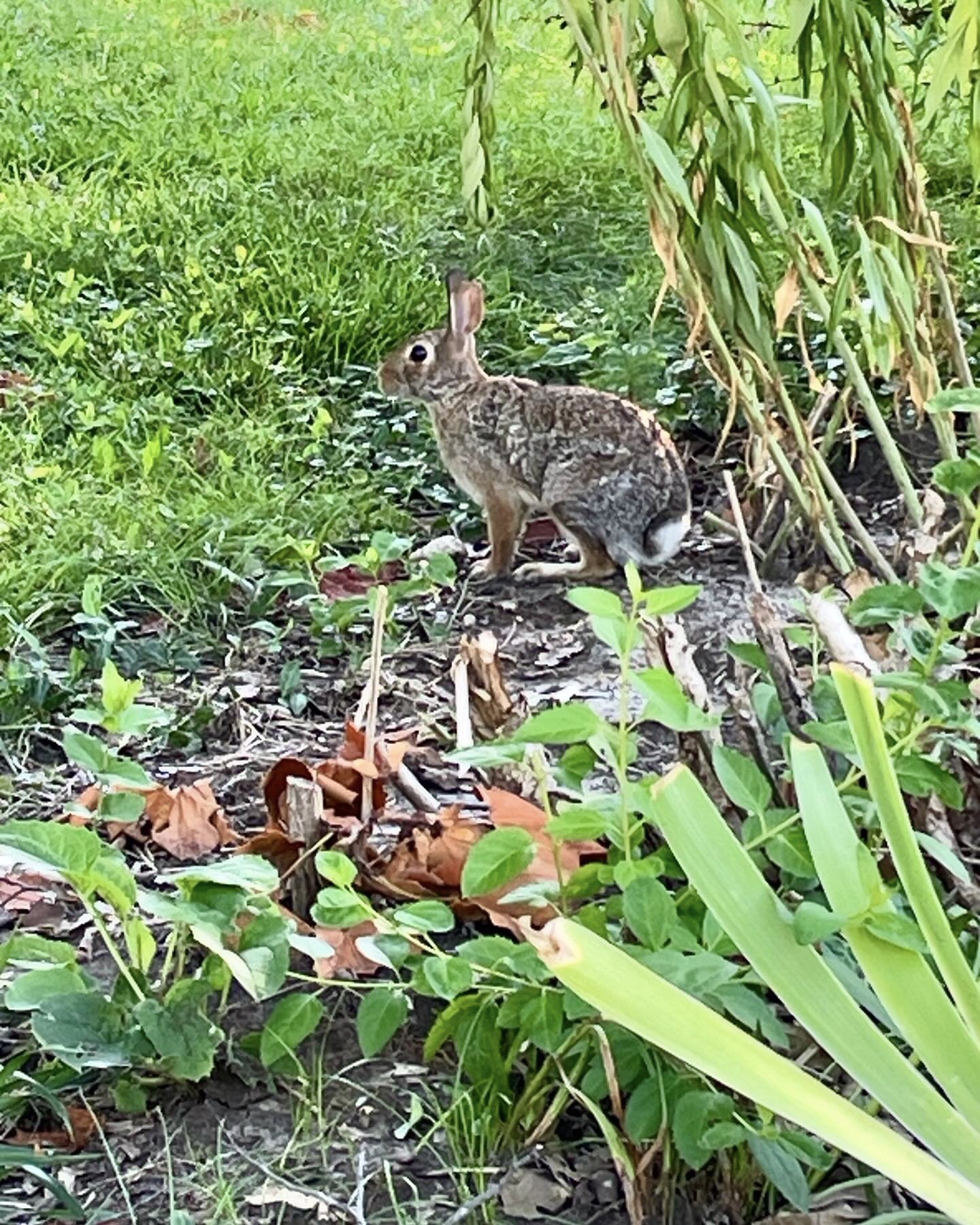 I’m a rabbit. I can see the thought bubble above this bunny’s head: If I hold completely still and blend into the background maybe the human won’t see me and will leave me alone.