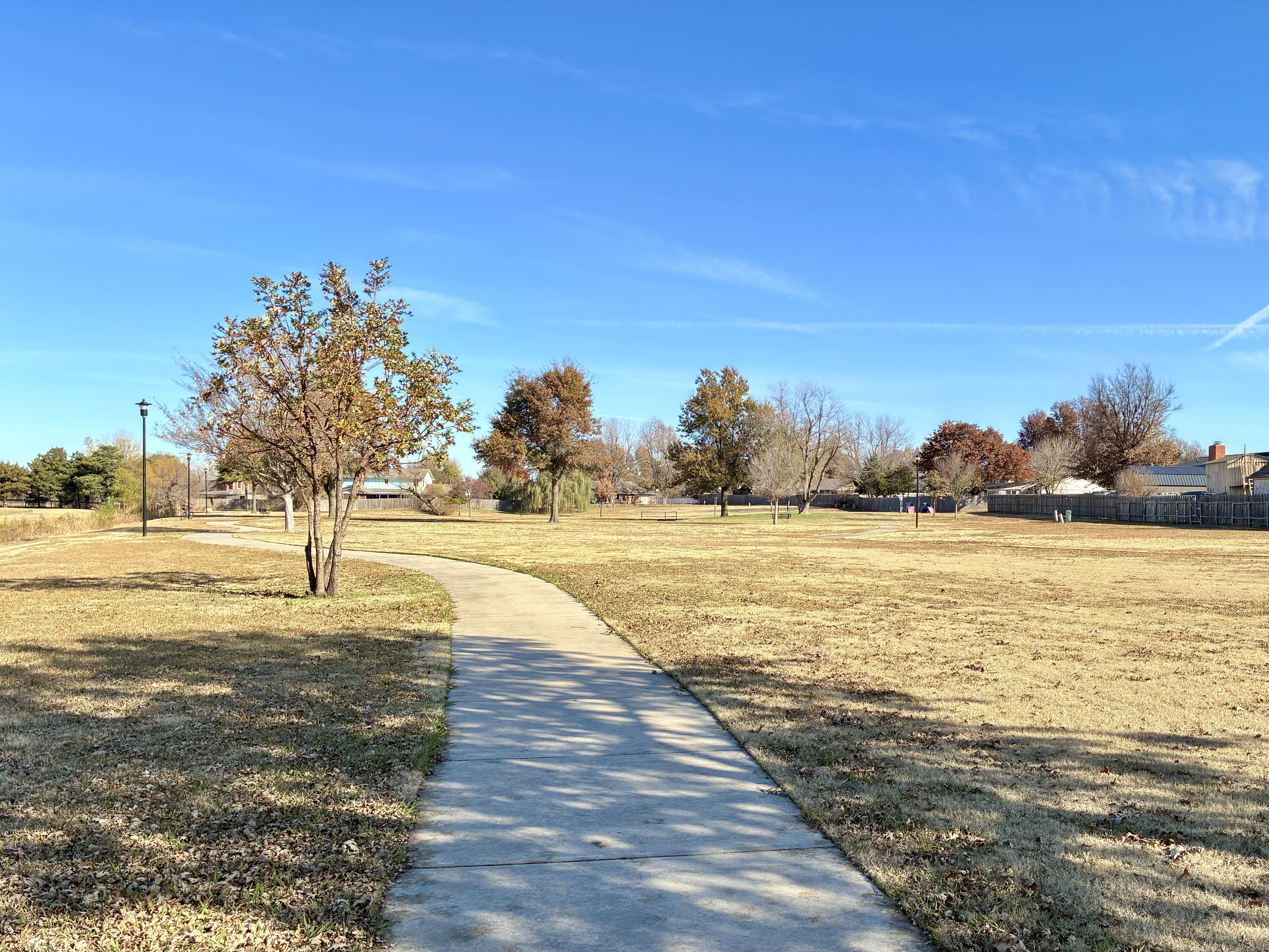 Today’s walk involved a fortunate discovery. The spouse and I are visiting some of his family in Oklahoma and staying in a hotel. I really wanted to make sure and get a walk before over—um, eating. Just eating.