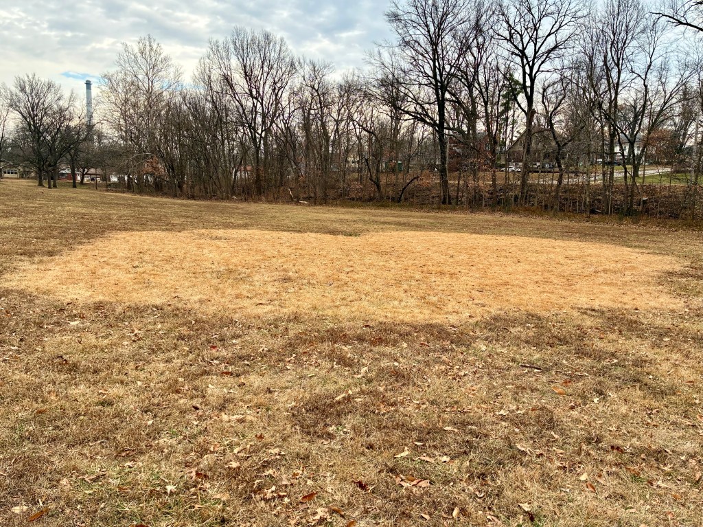 From a distance, it looked like it could be straw or hay spread on the ground. But it’s just monochromatic grass. Pacing it off, I came up with a guessed measurement of around 30 feet by 50 feet. It couldn’t be space aliens, of course. But how about fairies?