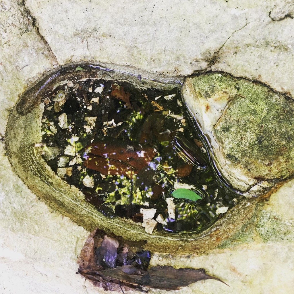 On the main trail, an interesting rock with an interesting puddle in an indentation.